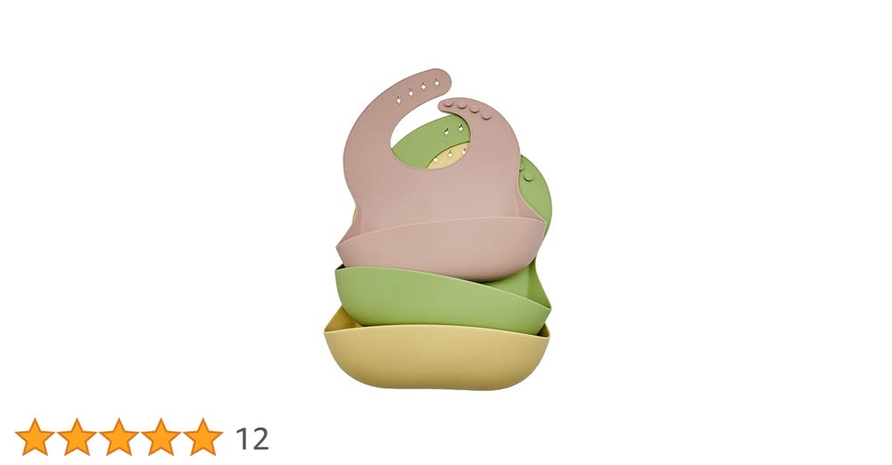 3-Pack Silicone Baby Feeding Bibs with Food Catcher (Waterproof, Adjus...