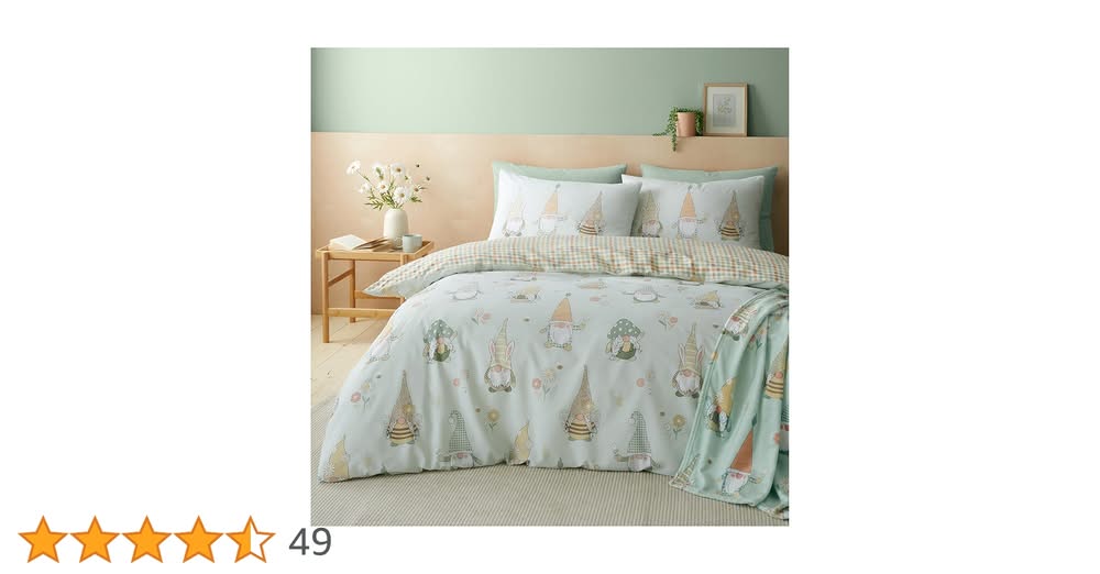 Catherine Lansfield Spring Gonks Reversible King Duvet Cover Set – Mint Green