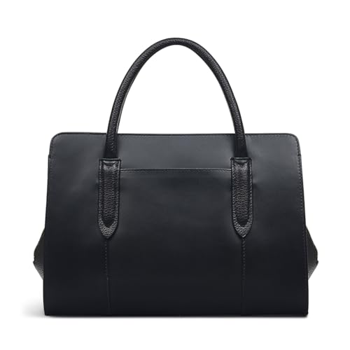 Crafted in smooth leather with grained leather trims, It has twin tubular grab handles, and a detachable cross body strap